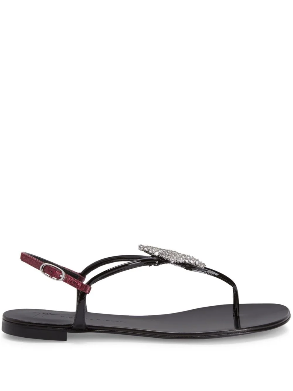Hollie Star crystal-embellished sandals Highlights - Black/dark red/silver-tone - Leather - Crystal embellishment - Round open toe - Buckle-fastening ankle strap - Branded footbed - Flat sole Made in Italy Composition Outer: Leather 100% Sole: Leather 100% Lining: Leather 100%
