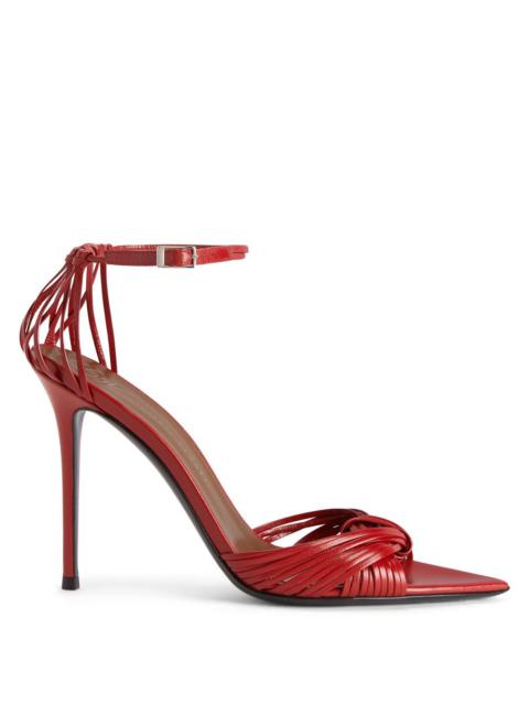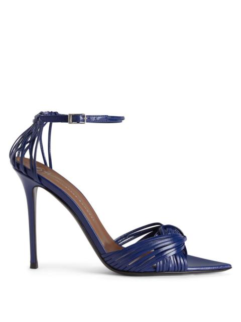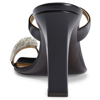 Product Details Giuseppe Zanotti celebrates its thirtieth birthday with an exclusive capsule collection embodying timeless elegance. A capsule born from the union between high-jewellery mastery and fine Italian craftsmanship. Thong sandals in leather with rhinestone ring accessory and block heel. - Black leather - Silver metal accessory and crystal-coloured rhinestones - 90mm-high heel - Brown leather sole with logo ORIGIN: ITALY COLOR: BLACK