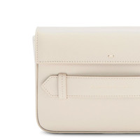 Product Details Leather clutch with metal detail, contrasting stitching, shoulder strap, inner pocket and card slots. - Beige leather - Golden metal accessory on the outside and beige leather handle - Beige leather shoulder strap - Magnetic fastening - Leather and fabric inner lining with card slots and pocket - Size: 185 mm x 120 mm x 50 mm ORIGIN: ITALY COLOR: PINK
