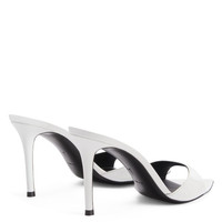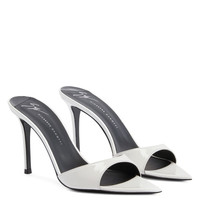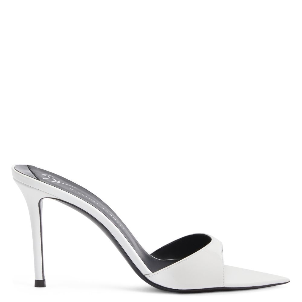 Product Details These open and pointed toe mules are crafted from patent-effect white synthetic fabric and feature leather soles and matching covered stiletto heels. White patent-effect synthetic fabric 90 mm heel covered in white patent-effect synthetic fabric Black leather sole with logo Origin Italy Color White More Minus