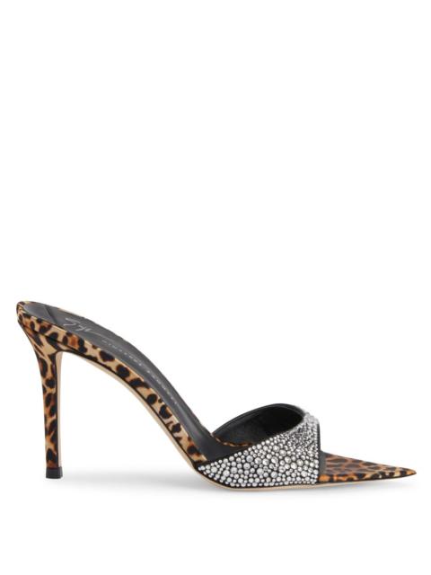 Product Details These open and pointed toe slingback sandals are crafted from light-brown synthetic satin and feature leather soles, matching covered stiletto heels, a front strap embellished with silver metal hardware with crystal rhinestones and a slingback strap. Light-brown synthetic satin fabric Silver metal hardware with crystal rhinestones 90 mm heel Heel covered in light-green synthetic satin Black leather sole with logo Made in Italy