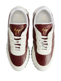 Jimi Running sneakers Highlights - White/dark red - Leather - Logo plaque at the tongue - Embossed crocodile effect - Front lace-up fastening - Panelled design - Almond toe - Branded insole - Flat rubber sole Made in Italy Composition Outer: Leather 100% Sole: Rubber 100% Lining: Fabric 100%