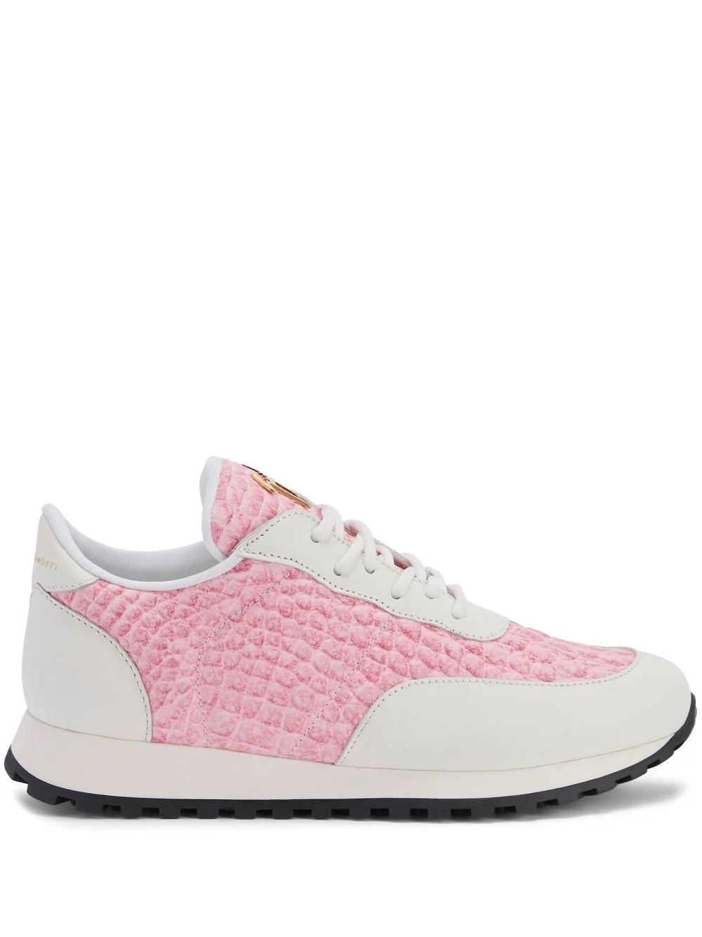 Jimi Running sneakers Highlights - Pink - Leather - Embossed crocodile effect - Logo plaque at the tongue - Almond toe - Branded insole - Flat rubber sole Made in Italy Composition Outer: Leather 100% Sole: Rubber 100% Lining: Fabric 100%