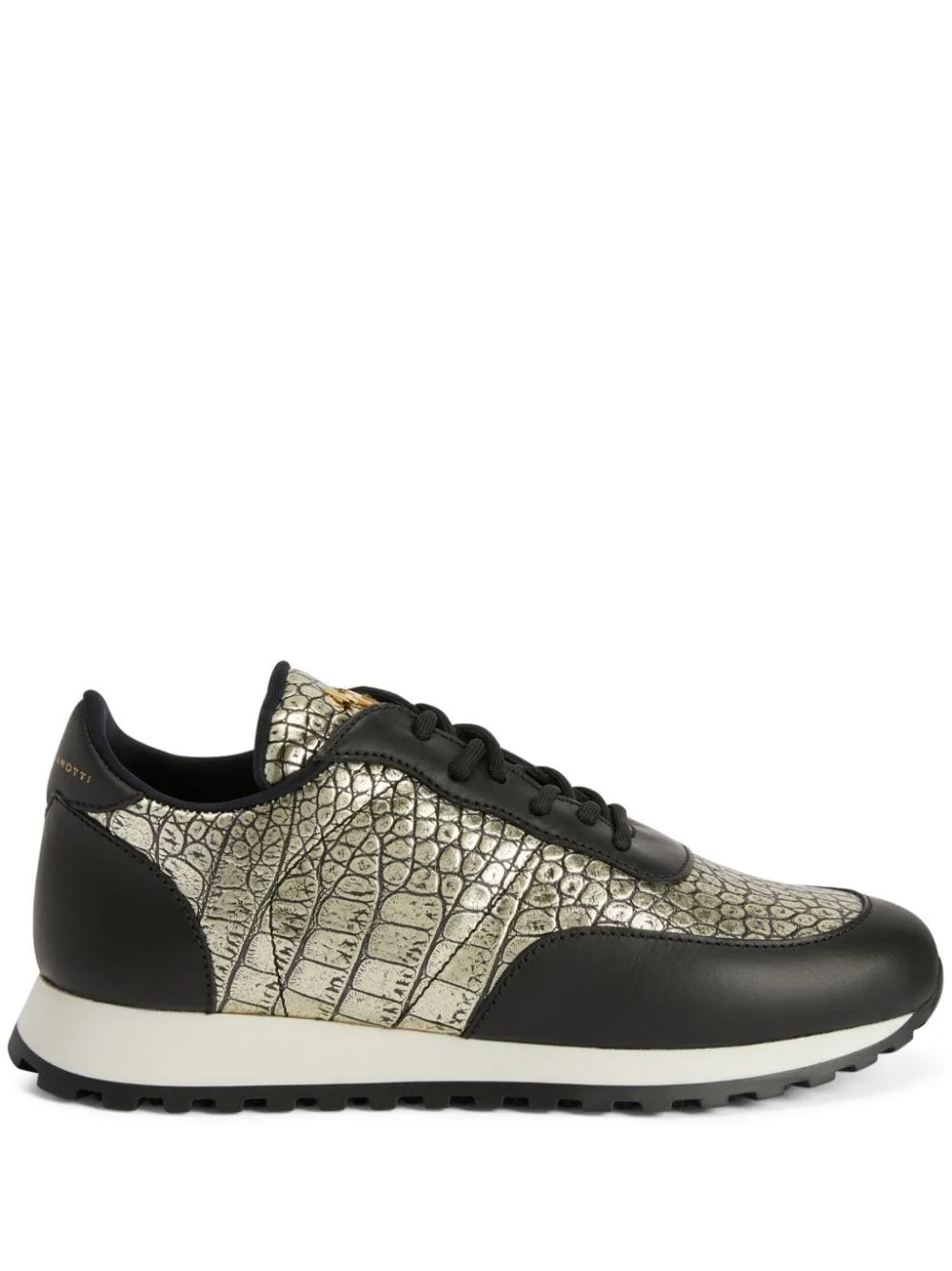 Jimi Running sneakers Highlights - Black/beige - Leather - Embossed crocodile effect - Panelled design - Gold-tone logo plaque at the tongue - Round toe - Front lace-up fastening - Branded heel counter - Branded insole - Ridged rubber sole Made in Italy Composition Leather 100%