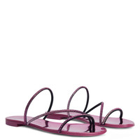 Product Details Crafted from black suede, this flat sandals feature thin straps decorated with an embroidery of mini pink rhinestones and are characterised by a pink laminated leather sole with logo. Black suede Pink mini rhinestones embroidery 10 mm heel Pink laminated leather sole with logo Made in Italy