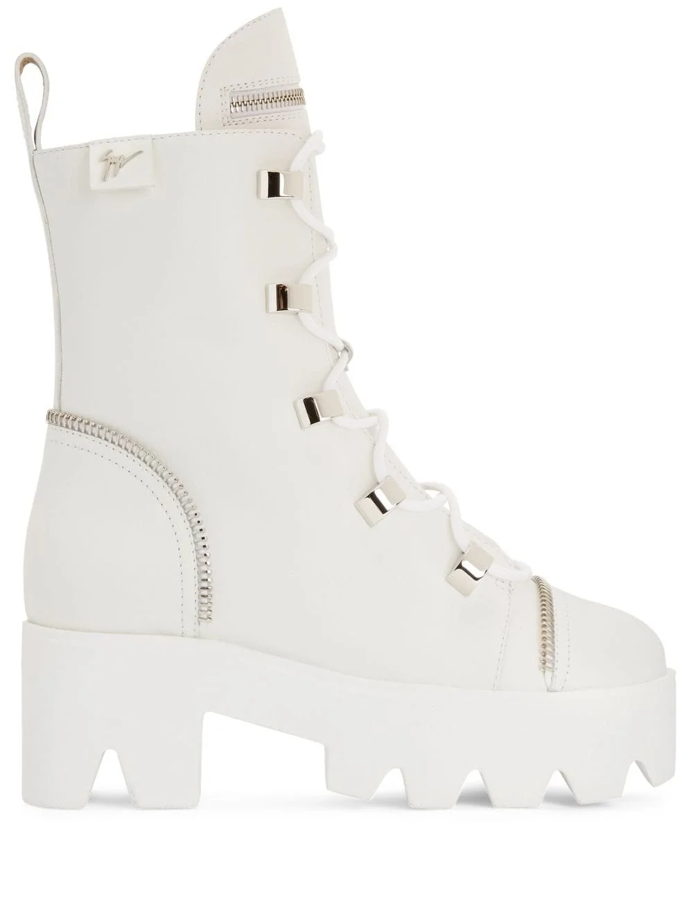 Juliett lace-up boots Highlights - Cream white - Leather - Decorative zip detailing - Lace-up detailing - Ankle-length - Pull-tab at the heel - Side zip fastening - Chunky rubber sole Made in Italy Composition Leather 100% SIZE & FIT Measurement HEEL 2.36 in(6 cm) PLATFORM 1.57 in(4 cm)