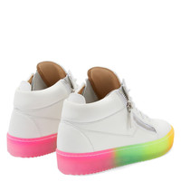 Product Details Mid-top sneakers crafted from white leather and patent leather with matching cotton laces, featuring a silver metal 'Signature' detail on the tongue and silver side zippers fastenings on the upper; a semitransparent, multicoloured rubber sole gives the design a perfect finish. White leather and white patent leather Silver metal 'Signature' detail White cotton laces Multicoloured semitransparent rubber sole with logo Made in Italy