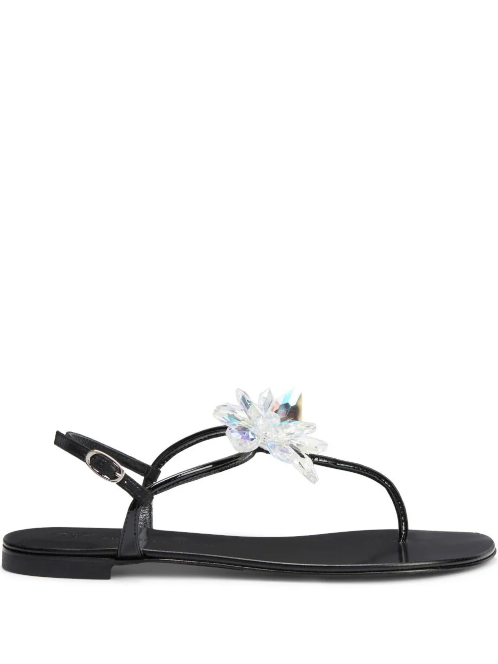 Letizia sandals Highlights - Black - Buckle-fastening slingback strap - Branded leather insole - Flat leather sole - Glass crystal embellishment Made in Italy Composition Sole: Leather 100% Outer: Suede 100%, Patent Leather 100%, glass 100% Lining: Calf Leather 100%