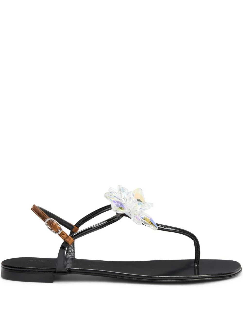 Letizia sandals Highlights - Black - Buckle-fastening ankle strap - Flat leather sole - Branded footbed - Round open toe Made in Italy Composition Outer: Leather 100%, glass 100%, Metal 100% Sole: Leather 100% Lining: Calf Leather 100%