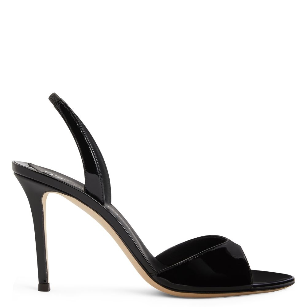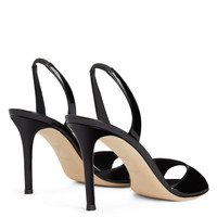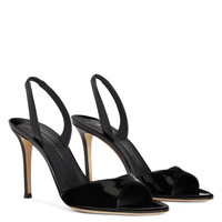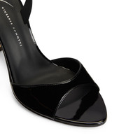 Product Details These slingback sandals are crafted from patent-effect black synthetic fabric and feature matching covered stiletto heels. A leather sole with logo and an elastic slingback strap give the design a perfect finish. Patent-effect black synthetic fabric Heel covered in patent-effect black synthetic fabric 90 mm heel Leather sole with logo Origin Italy Color Black More Minus