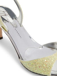 70mm Lilibeth Glitter sandals Highlights - Butter yellow - Leather - Glitter detailing - Open toe - Elasticated slingback strap - Branded leather insole - Mid cone heel Made in Italy Composition Sole: Leather 100% Outer: PVC 45%, Cotton 30%, Water Adhesive 25% Lining: Polyurethane 100%