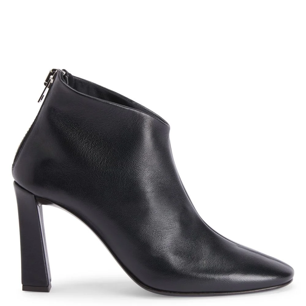 Product Details Soft leather booties with a rounded toe, back zipper, and block heel. - Black leather - Zipper and zipper pull in silver metal on the back - 90 mm heel covered in black leather - Brown leather sole with logo ORIGIN: ITALY COLOR: BLACK