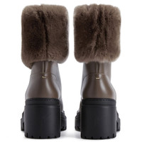 Product Details Leather ankle boots with fur cuff and rubber lug sole. - Upper: 80% calfskin, 20% - Lining: 80% wool - 20% NY - Insole: 80% wool - 20% NY - Sole: Rubber ORIGIN: ITALY COLOR: BROWN