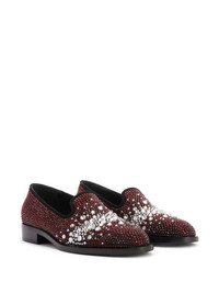 Matildha crystal-embellished loafers Highlights - Bordeaux red - Suede - Crystal embellishment - Branded leather insole - Round toe - Slip-on style - Low block heel Made in Italy Composition Outer: Suede 100% Sole: Leather 100%