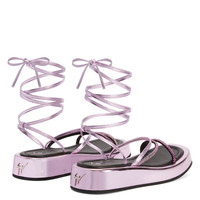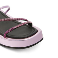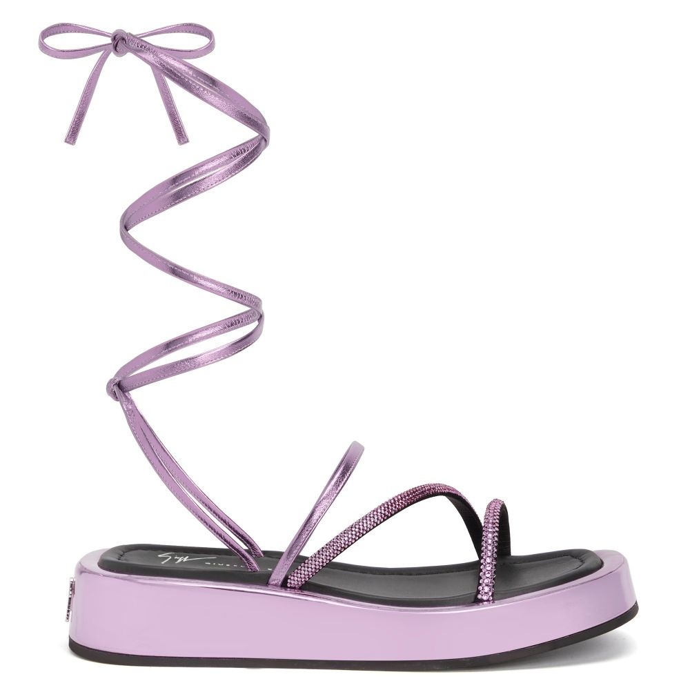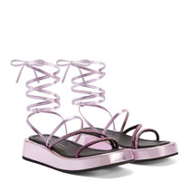 Product Details These platform sandals are crafted from black suede and pink mirror-effect synthetic fabric with a black rubber sole, and feature long laces for an adjustable closure along the leg, thin straps on the front embellished with a pink mini rhinestones embroidery and a silver 'Signature' detail on the sole. Black suede and pink laminated leather laces Pink mini rhinestones embroidery and silver 'Signature' on the sole 35 mm sole covered in pink mirror-effect synthetic fabric (75% PU; 20% PL; 5% VI) Black rubber sole with logo Made in Italy