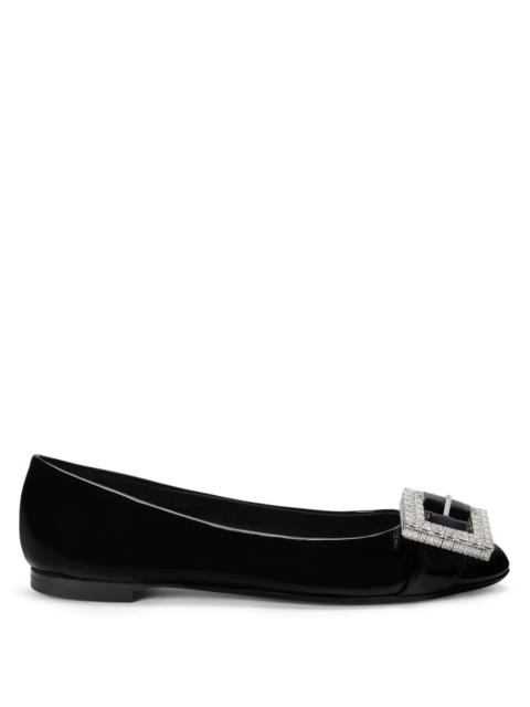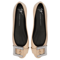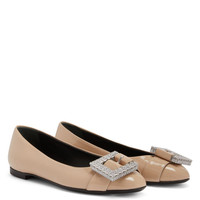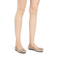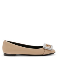 Product Details These pointed-toe pumps, crafted from patent-effect pinkish brown synthetic fabric, feature a classic silhouette and a black leather sole with logo and are embellished with a silver metal maxi buckle with crystal rhinestones on the toe. Patent-effect pinkish brown synthetic fabric Silver metal maxi buckle with crystal rhinestones 10 mm heel Black leather sole with logo Made in Italy