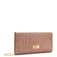 Product Details Crocodile-print leather clutch bag with stitching in the middle, custom central fastening, chain shoulder strap and inner card slots. - Nude crocodile-print leather - Rigid golden metal nut-shaped turn lock closure - Golden metal shoulder strap - Black fabric inner lining with card slots - Size: 330 mm x 180 mm x 35 mm ORIGIN: ITALY COLOR: PINK