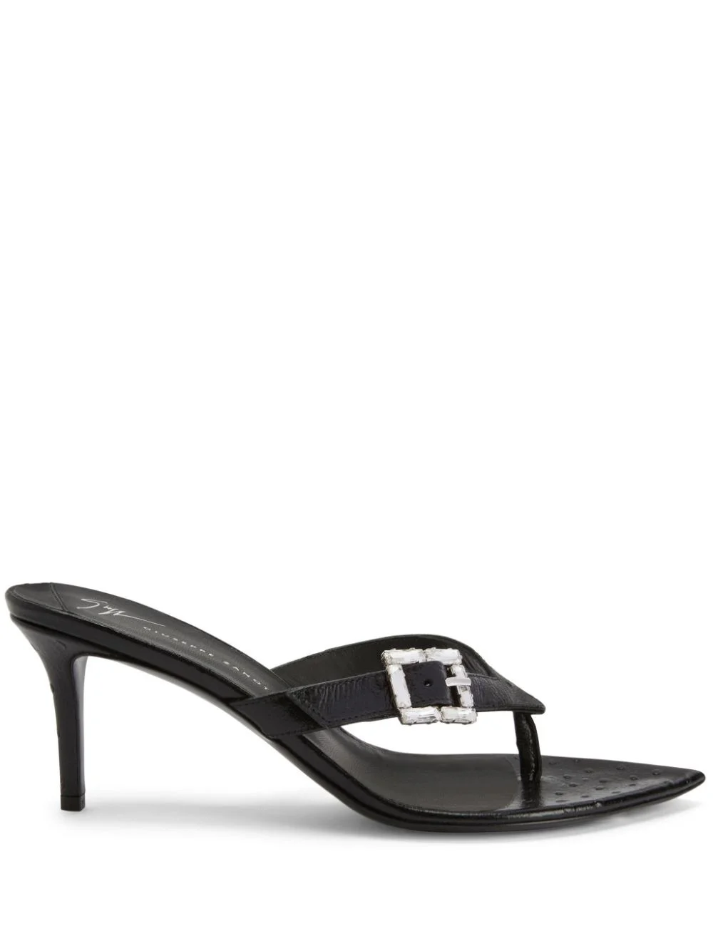 Naomee 70mm leather sandals Highlights - Black - Calf leather - Crystal buckle detail - Slip-on style - Pointed toe - Branded leather insole - 70mm mid heel Made in Italy Composition Lining: Calf Leather 100% Sole: Calf Leather 100% Outer: Calf Leather 100% SIZE & FIT Measurement HEEL 2.75 in(7 cm)