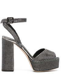 New Betty 130mm platform sandals Highlights - Silver-tone - Calf leather - Metallic finish - Silver-tone logo plaque - Buckle-fastening ankle strap - Open toe - Branded leather insole - 130mm high block heel Composition Lining: Calf Leather 100% Sole: Calf Leather 100% Outer: Fabric 100% SIZE & FIT Measurement HEEL 5.1 in(13 cm)