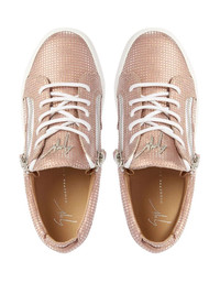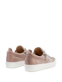 Gail metallic-effect sneakers pale pink metallic effect silver-tone logo plaque branded insole round toe lace-up detailing side zip fastening ridged rubber sole Made in Italy Composition Sole: Rubber 100% Lining: Leather 100% Outer: Fabric 100%