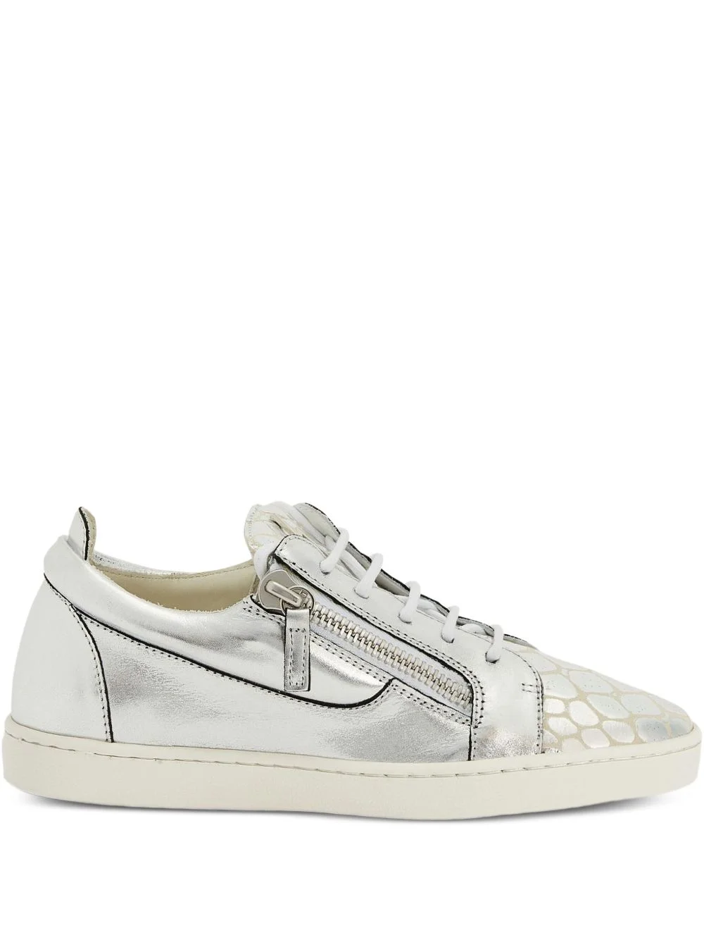 Nicki zip-detail leather sneakers Highlights - Silver-tone - Leather upper - Side zip fastening - Embossed pattern - Lace-up closure - Flat rubber sole Made in Italy Composition Outer: Leather 100% Sole: Rubber 100% Lining: Calf Leather 100%