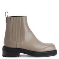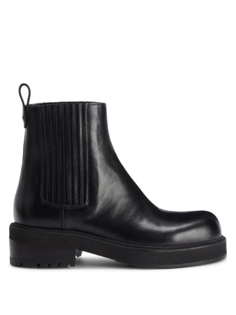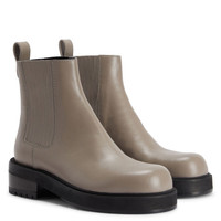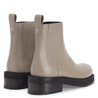 Product Details Leather Chelsea boots with leather-covered elastic insert on either side, metal detail and one-piece sole. - Grey leather - Black elastic insert on either side - Silver-coloured metal accessory - Heel height: 50 mm - One-piece black rubber sole with logo ORIGIN: ITALY COLOR: GREY