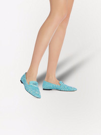 Pigalle starlight loafers blue leather/suede square toe crystal embellishment studded logo detail branded insole flat sole Made in Italy Composition Outer: Suede 100%, Crystal 100% Sole: Leather 100% Lining: Leather 100%