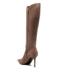 85mm suede boots Highlights - Taupe brown - 85mm stiletto heel - Zip fastening Made in Italy Composition Sole: Rubber 100%, Calf Leather 100% Lining: Calf Leather 100% Outer: Suede 100% SIZE & FIT Measurement HEEL 3.34 in(8.5 cm)