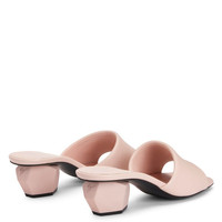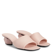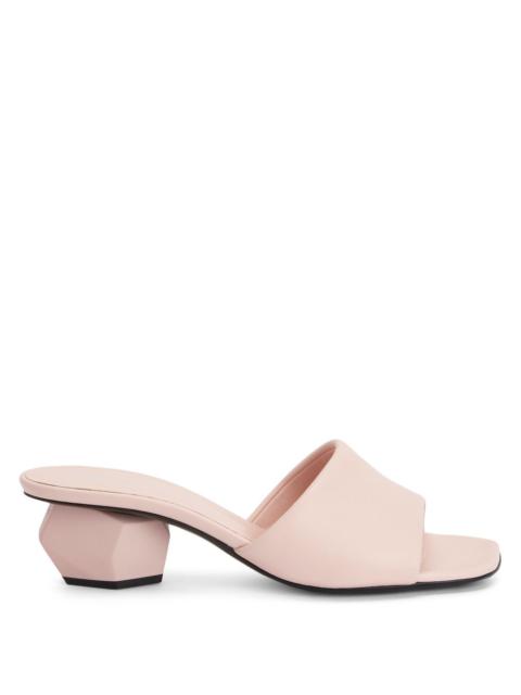 Product Details Mules crafted from pink synthetic fabric with a leather effect, featuring sculptural chunky heels with a matching rubberised finish and leather soles with logo. Pink leather-effect synthetic fabric (70% PU; 30% PL) Pink rubberised 45 mm heel Leather sole with logo Made in Italy