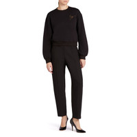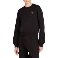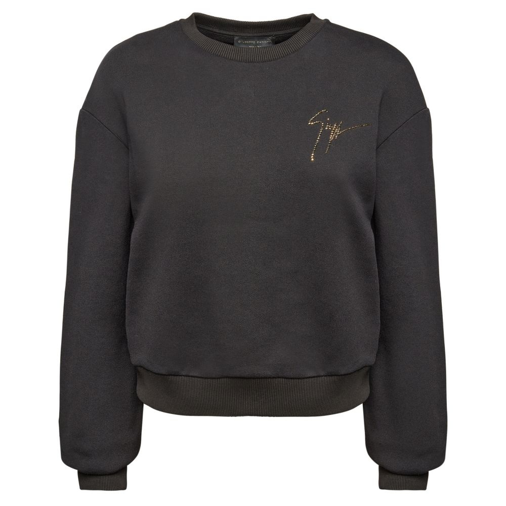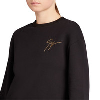 Product Details Crew-neck sweatshirt crafted from black cotton blend fabric with elastic cuffs, featuring a golden rhinestone 'Signature' embroidery on the chest. Fabric (70% CO; 30% PO) Golden rhinestone 'Signature' embroidery Made in Italy