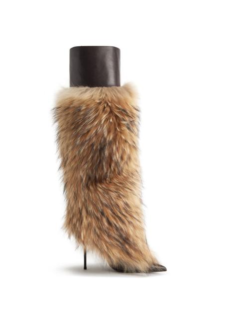 Product Details Suede ankle boots with tapered toe and delicate pleating. Patent trim detail with golden-finish buckle. Slender stiletto heel. - Upper: 95% goatskin suede, 5% lambskin - Lining: woven leather - Insole: goatskin - Sole: leather - Heel height: 85mm ORIGIN: ITALY COLOR: BLACK