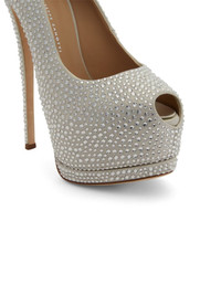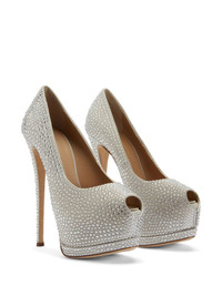 Sharon 140mm rhinestone-embellished pumps Highlights - Light grey - Calf leather - Satin finish - Rhinestone embellishment - Peep toe - Platform sole - Branded insole - 140mm high stiletto heel Made in Italy Composition Outer: Satin 100% Sole: Leather 100% Lining: Calf Leather 100% SIZE & FIT Measurement HEEL 5.51 in(14 cm) Sole height 0.98 in(2.5 cm)