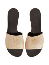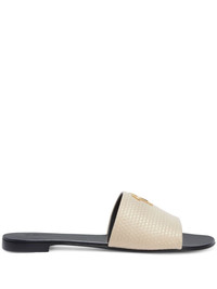 Shirley sandals Highlights - Light beige - Embossed detail - Gold-tone logo plaque - Round open toe - Single toe strap - Slip-on style - Branded insole - Flat leather sole Made in Italy Composition Outer: Fabric 100% Sole: Leather 100% SIZE & FIT Measurement HEEL 0.39 in(1 cm)