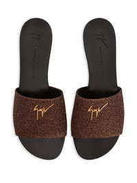 Shirley glitter sandals Highlights - Walnut brown - Glitter detailing - Gold-tone logo plaque - Single toe strap - Round open toe - Branded leather insole - Flat leather sole Made in Italy Composition Outer: Fabric 100% Sole: Leather 100%