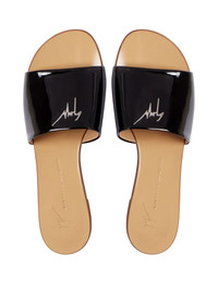 Shirley patent-effect sandals Highlights - Black - Patent effect - Silver-tone logo plaque - Branded leather insole - Open toe - Open back - Slip-on style - Flat leather sole Made in Italy Composition Other fibres 100% SIZE & FIT FittingInformation This piece fits small – take one size up Measurement HEEL 0.39 in(1 cm)