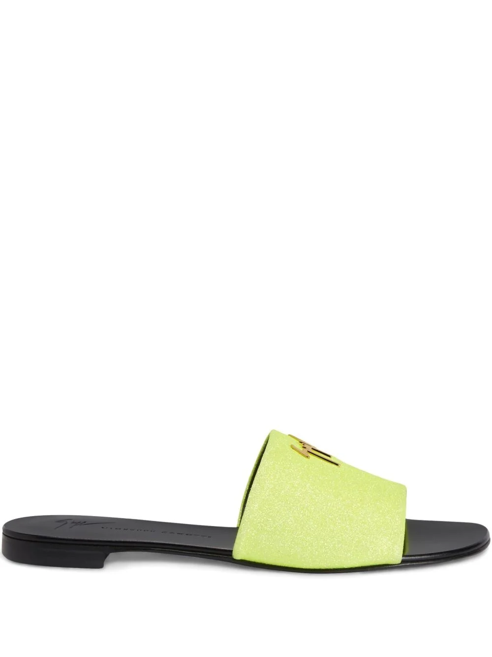 Shirley glitter sandals Highlights - Fluorescent yellow - Slip-on style - Branded leather insole - Flat leather sole - Gold-tone logo plaque Made in Italy Composition Outer: Fabric 100% Sole: Leather 100% Lining: Calf Leather 100%