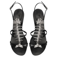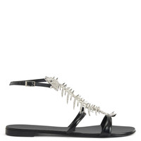 Product Details Limited edition reissue of the iconic Slim. Flat leather sandal with adjustable strap and fishbone-shaped metal and crystal rhinestone ornament. - 100% Leather - 'Slim' accessory in silver-colored metal crystal-colored rhinestones and studs - Adjustable strap with buckle - Leather sole ORIGIN: ITALY COLOR: BLACK