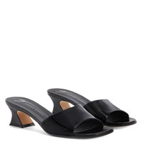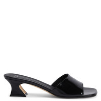Product Details These open-toe mules, crafted from black leather, feature a matching covered spool kitten heel and are characterised by a minimalistic upper and a leather sole with logo. Black leather 45 mm heel Heel covered in black leather Leather sole with logo Origin Italy Color Black More Less