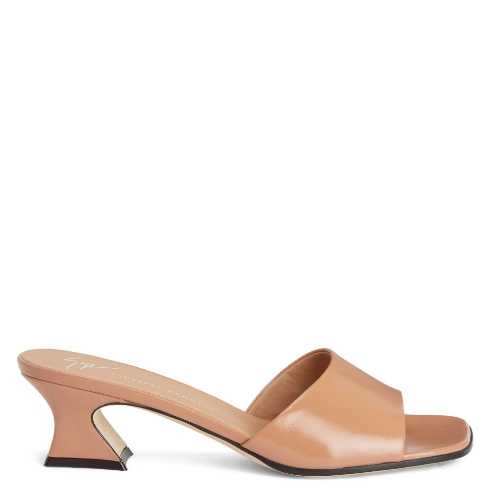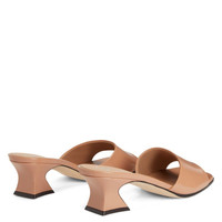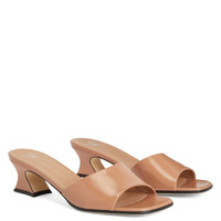 Product Details These sandals, crafted from pinkish brown leather, feature matching covered spool kitten heels and leather soles with logo. Pinkish brown leather 45 mm heel Heel covered in pinkish brown leather Leather sole with logo Origin Italy Color Beige More Minus