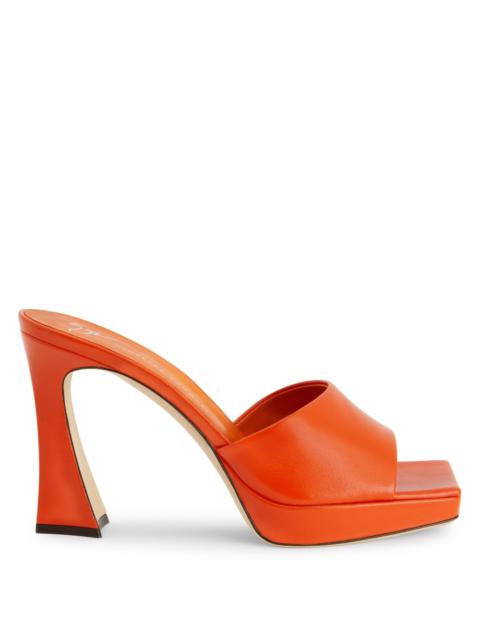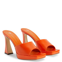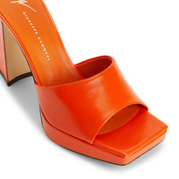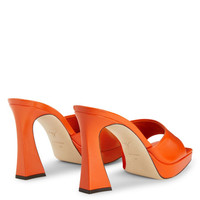 Product Details These mules, crafted from orange leather, feature a matching covered spool heel and platform and are characterized by a square toe and a leather sole with logo. Orange leather 100 mm heel covered in orange leather 15 mm platform covered in orange leather Leather sole with logo Made in Italy