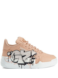 Product Details Mid-top 'Talon' sneakers crafted from pink leather, with matching technical fabric inner lining and cotton laces; the design features a pink lacquered metal 'Signature' on the tongue, a matching rubberised 'Label Signature' on the outside, a white, black and pink 'Graffiti' finish on the upper and a white rubber sole. Women's sneakers Pink leather White, black and pink 'Graffiti' finish on the upper Pink lacquered metal 'Signature' Pink rubberised 'Label Signature' White rubber sole with logo Made in Italy