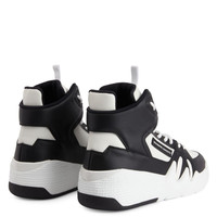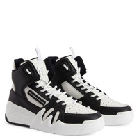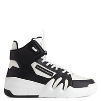 Product Details The 'Talon' model has been recreated with bold colours that emphasise the urban-street character of this trainer. Made from black and white leather, the upper is embellished with a lacquered white metal Signature and a white rubber Signature label. The white rubber sole has a touch of black on it. Black and white leather Metal Signature detail Rubber Signature label Hidden wedge: 2,5 cm Rubber sole with logo Made in Italy