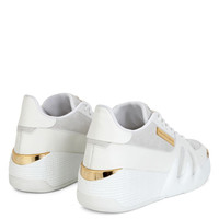 Product Details Talon low-top lace-up sneakers in suede and leather with golden detail on the upper and bottom and rubber sole. - White suede - Tone-on-tone leather inserts - Golden metal Signature - Hidden wedge: 2,5 cm - Rubber sole with golden spoiler ORIGIN: ITALY COLOR: WHITE