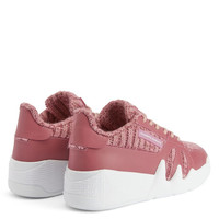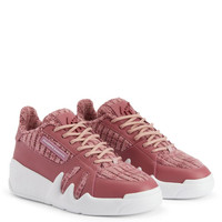 Product Details Mid-top 'Talon' sneakers, crafted from pink leather and suede-effect synthetic fabric, featuring matching inner lining and cotton laces, a pink lacquered 'Signature' metal detail on the tongue, a pink rubberised 'Label Signature' on the side of the upper and a white rubber sole. Women's sneakers Dark pink leather and pink knit-inspired synthetic fabric Pink rubberised metal 'Signature' Pink rubberised 'Label Signature' Pink knit-inspired synthetic fabric inner lining White rubber sole with logo Made in Italy