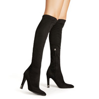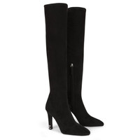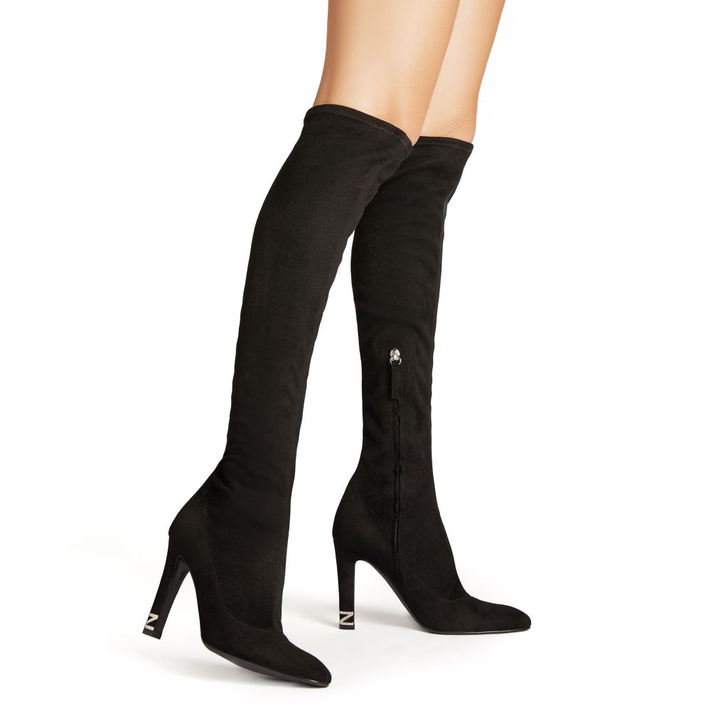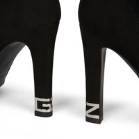 Product Details High boots in black synthetic stretch fabric, complete with silver metal GZ detail on the lower end of the covered matching heel. 105 mm heel Black synthetic fabric (95% PL; 5% PU) GZ detail Leather sole with logo Made in Italy