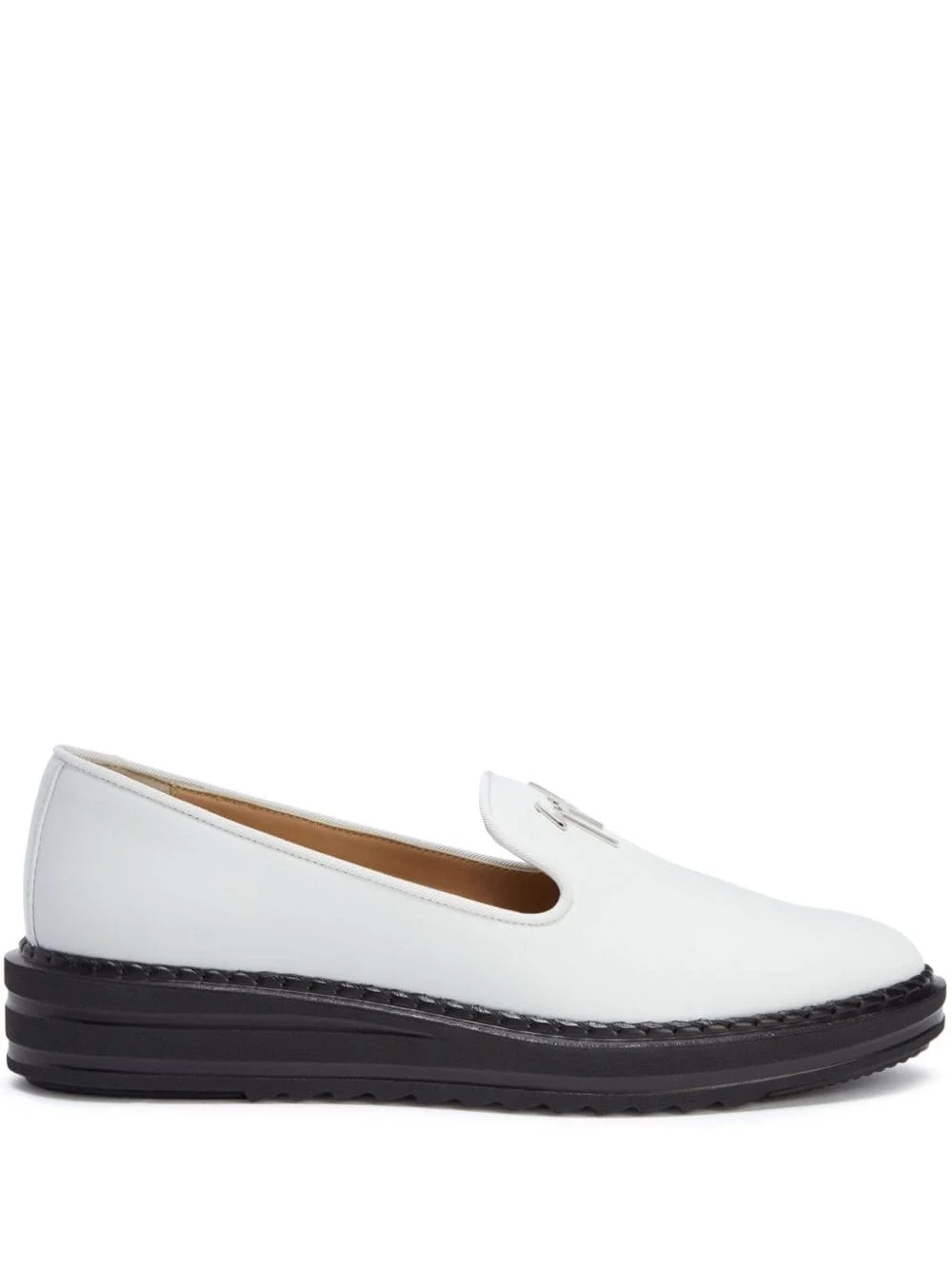 Tim logo-lettering loafers Highlights - Optical white - Leather - Silver-tone logo lettering - Almond toe - Slip-on style - Branded insole - Flat rubber sole Made in Italy Composition Leather 100%