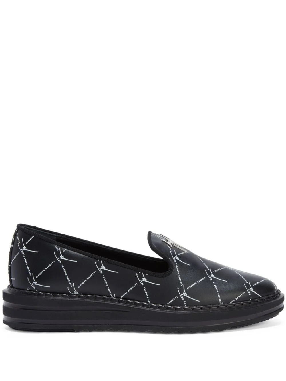 Tim logo-lettering loafers Highlights - Black - Leather - Monogram print - Silver-tone logo lettering - Almond toe - Slip-on style - Branded insole - Flat rubber sole Made in Italy Composition Leather 100%