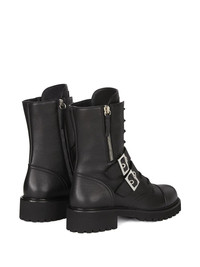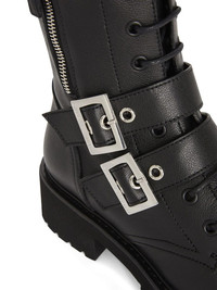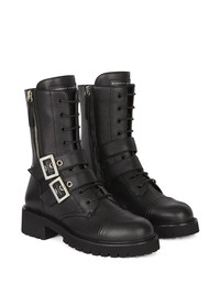 - Heel measures approximately 40mm/ 1.5 inches - Black leather (Calf) - Zip and buckle fastenings at side, lace-up front