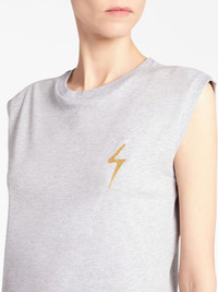 Ursella logo-embroidered sleeveless cotton tank top Highlights - Heather grey - Cotton - Signature thunderbolt print - Embroidered logo at the chest - Logo print to the rear - Round neck - Sleeveless - Rear curved hem Made in Italy Composition Cotton 100% Washing instructions Read Manufacturer Guidelines