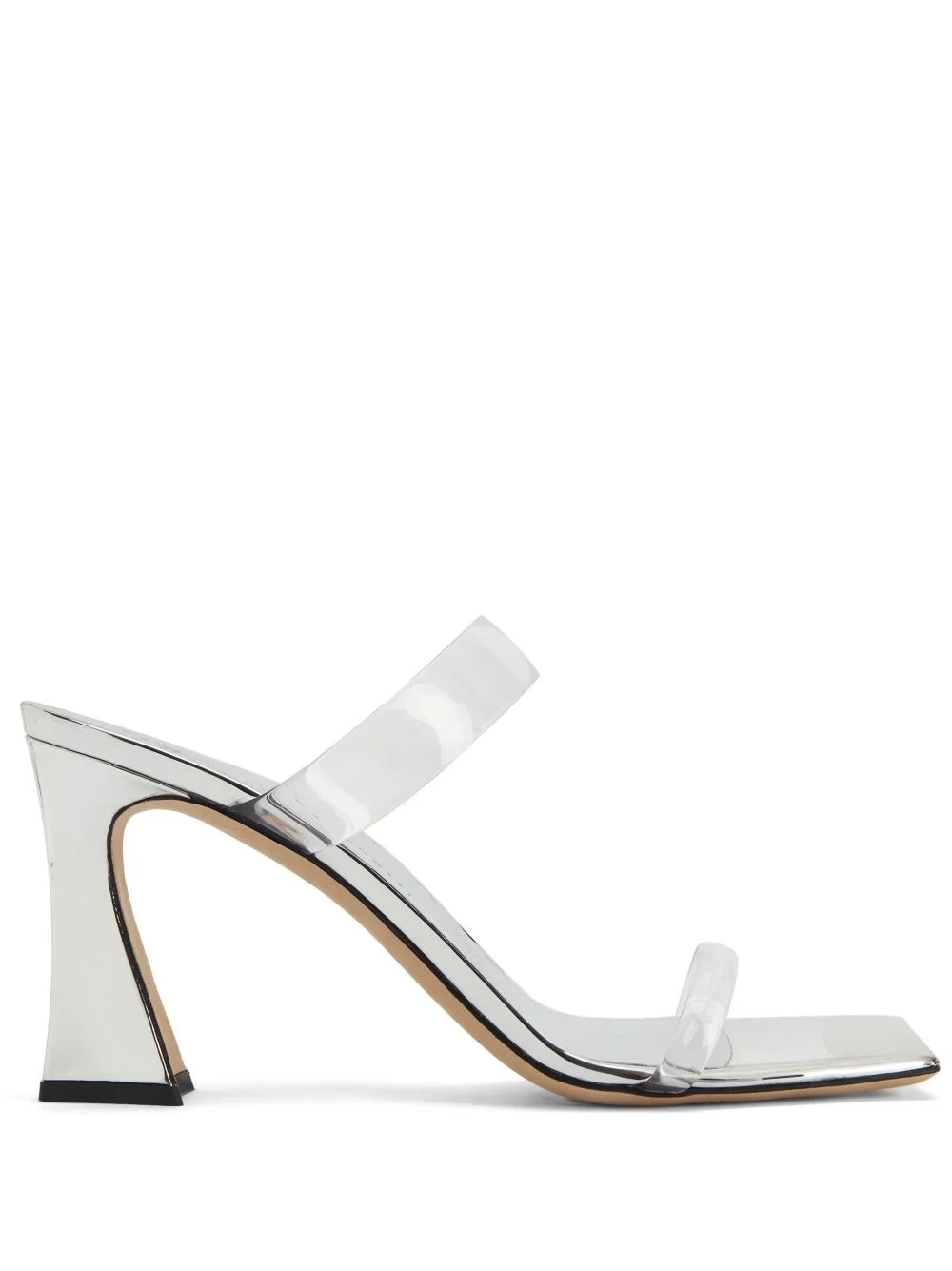 Flamina PLexi 80mm metallic-finish sandals Highlights - Silver-tone - Leather - Metallic finish - Transparent design - Double-strap design - Open toe - Slip-on style - Branded footbed - 80mm high heel - Leather sole Made in Italy Composition PVC 100%